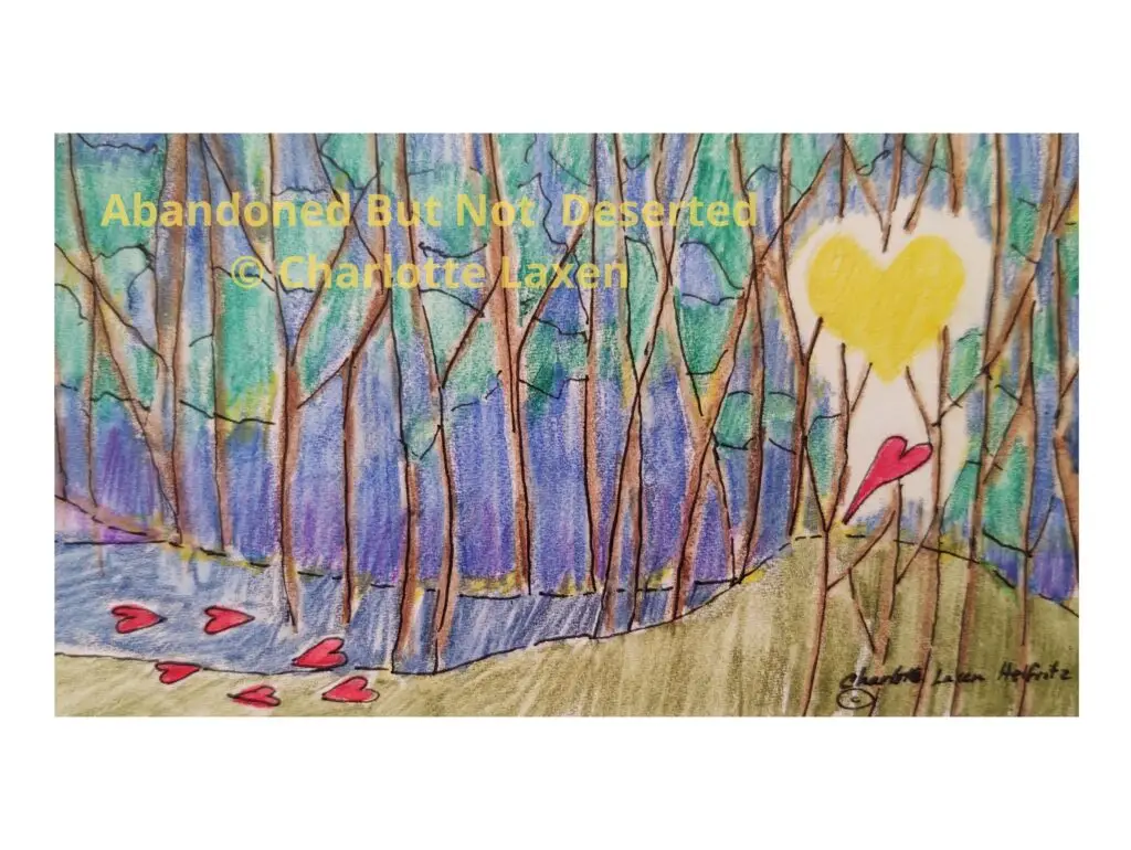 Reflection: After reading the book When We Pray Like Jesus by Elisa Morgan, I will never again feel that God doesn’t understand what I may be going through. In the Garden of Gethsemane the night before His death, we see how Jesus, Who was fully God, was also fully human in His mental agony. Sorrowful and troubled, He expressed what He wanted but yielded to what was more important, what His Father wanted. My drawing/painting represents how He was abandoned by His followers but not by His Father. It gives me hope to realize that, no matter how alone I feel, I can trust my Father who will never leave or forsake me. Jesus was not abandoned in the garden but submitted to the cross so that I could live securely in His presence in this life and for all eternity.