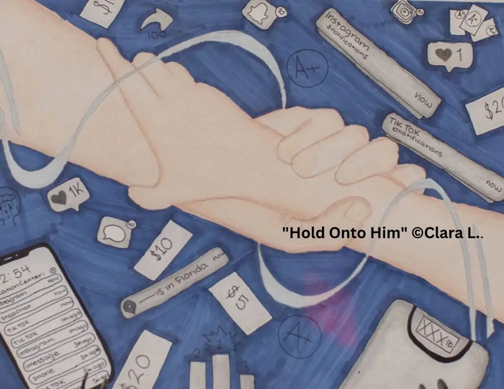 Originally, I was going to use graphite pencil and rely on the darks and the lights to express the meaning behind it, but gradually I realized that other media and colors would help exaggerate the meaning behind this work. To show that social media, peer pressure, etc., are not nearly as important as loving God and holding fast to him, I shaded the things that do not matter to Him with a graphite pencil.