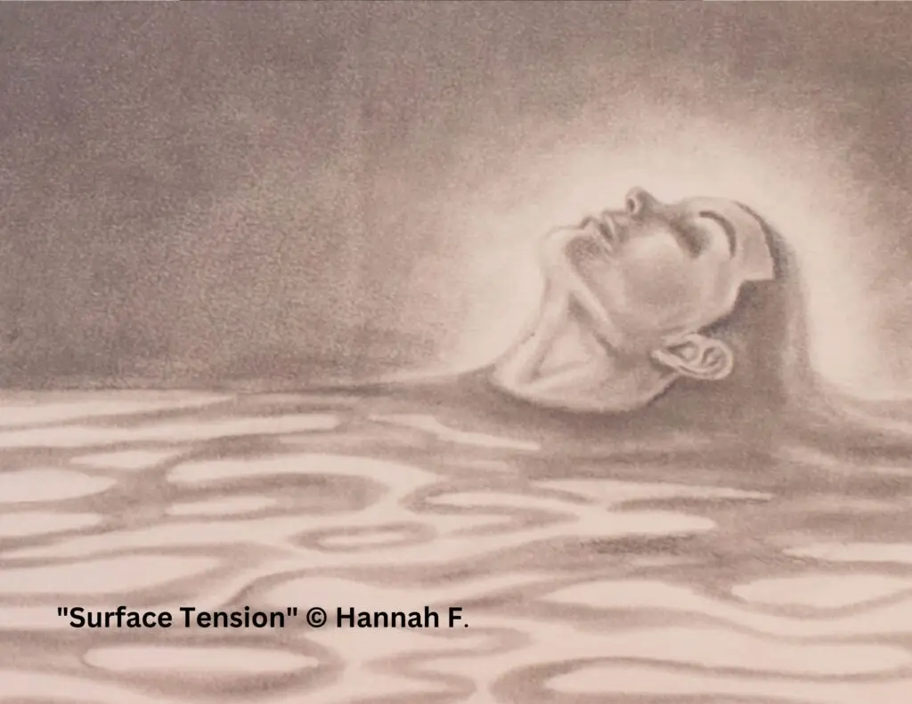 When I was deciding on the composition of my art, I had a hard time deciding what I wanted the water to be. I ended up choosing to do the person’s hair as the water, because it’s more personal to the individual. Our struggles represent who we are, and they are the things shape and develop character. While they are hard, they make us stronger.