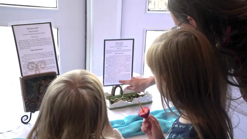 - As of spring of 2025 we’ve sponsored and shared seven traveling exhibits three of which featured high school artists and four with multi-generational artists, including high school students. The exhibits visually reflected our artists’ thoughts and feelings in response to themes: “Who is God?”, “How Great Is Our God”, “God Our Refuge”, “The God Who Sees”, “In God’s Hands”, “Show Us Your Glory,” and “Behold God.” All of these exhibitions have also been videotaped. For the “God Our Refuge” exhibit, we produced an accompanying documentary of the high school artists’ journey through COVID 19 and how they found refuge in God. These exhibits have been popular with local churches and have booked out as soon as we have released them.