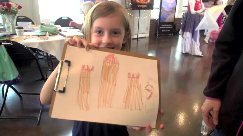 During worship at our “Behold God” Exhibition, this young artist drew a castle with King Jesus at the side.