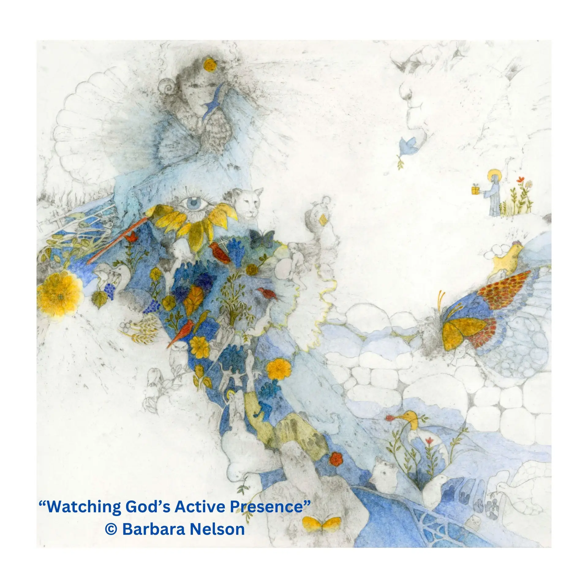 Art Watching God’s Active Presence by Barbara Nelson; Poem “Always There” by Kris Newlin. In all my wanderings, In all my doubts, In all the