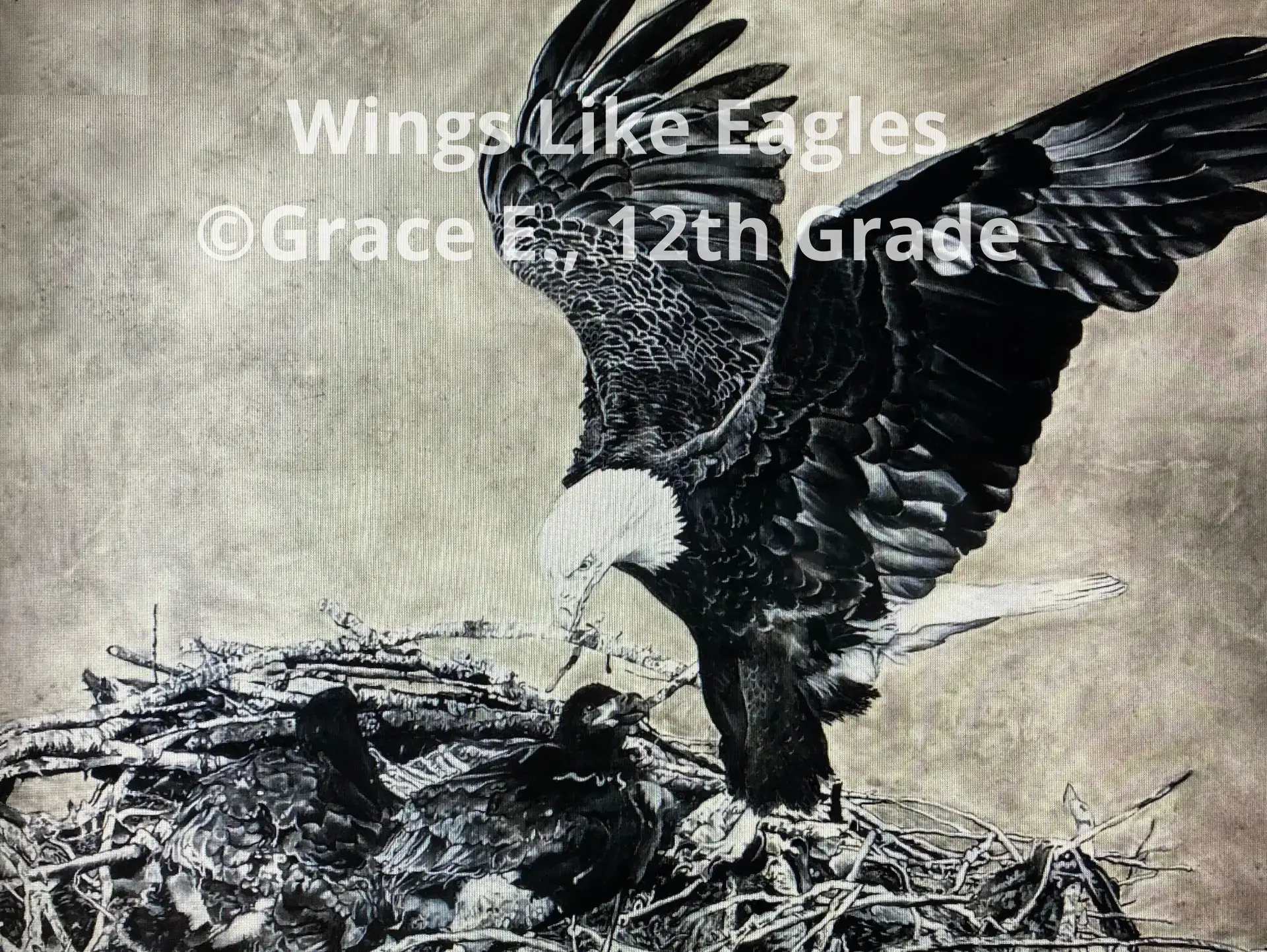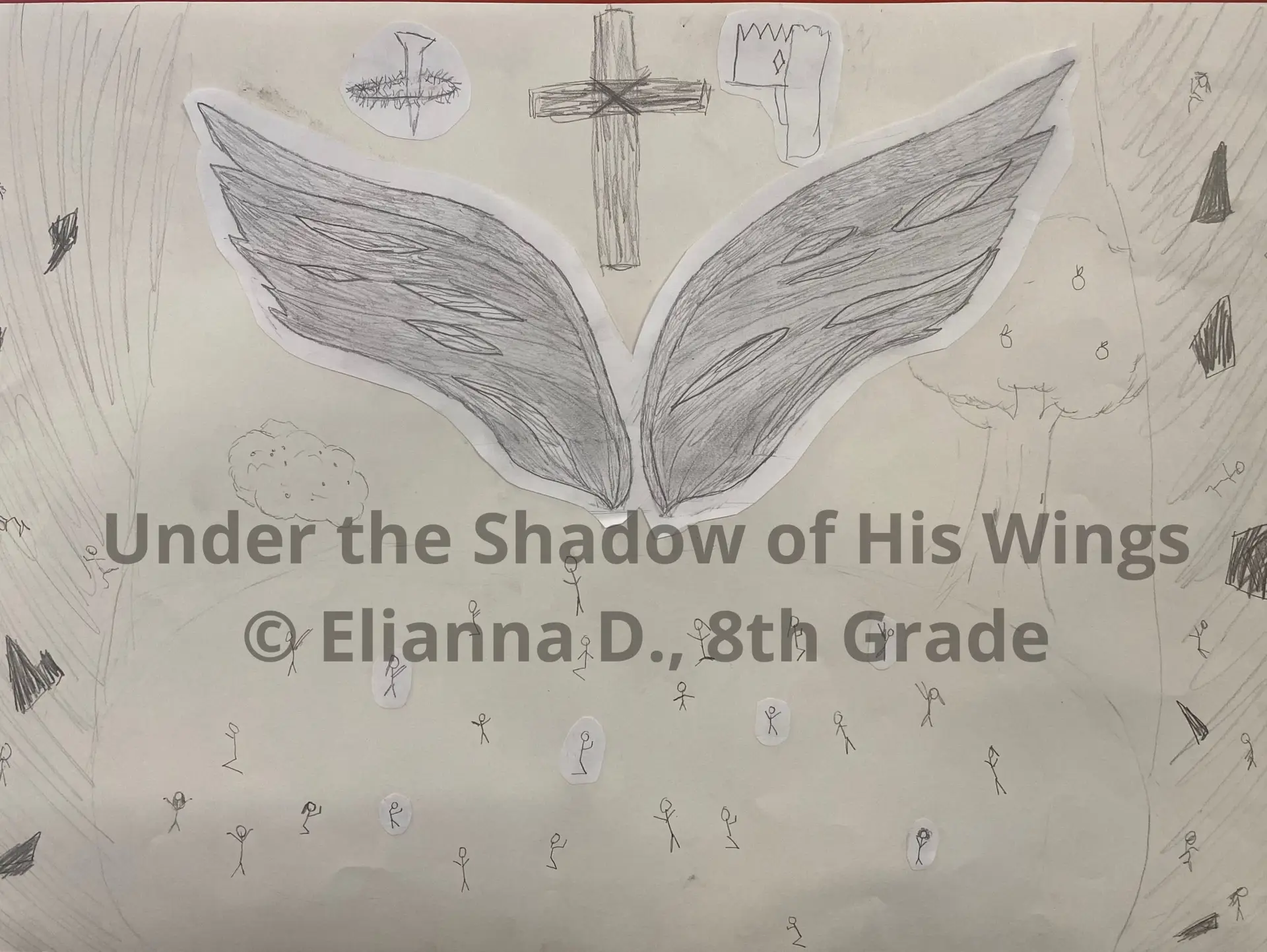 Artist: Grace, 12th grade, Concordia Academy, Roseville, MN. Medium: Charcoal. Scripture: Whoever dwells in the shelter of the Most High will rest in the shadow