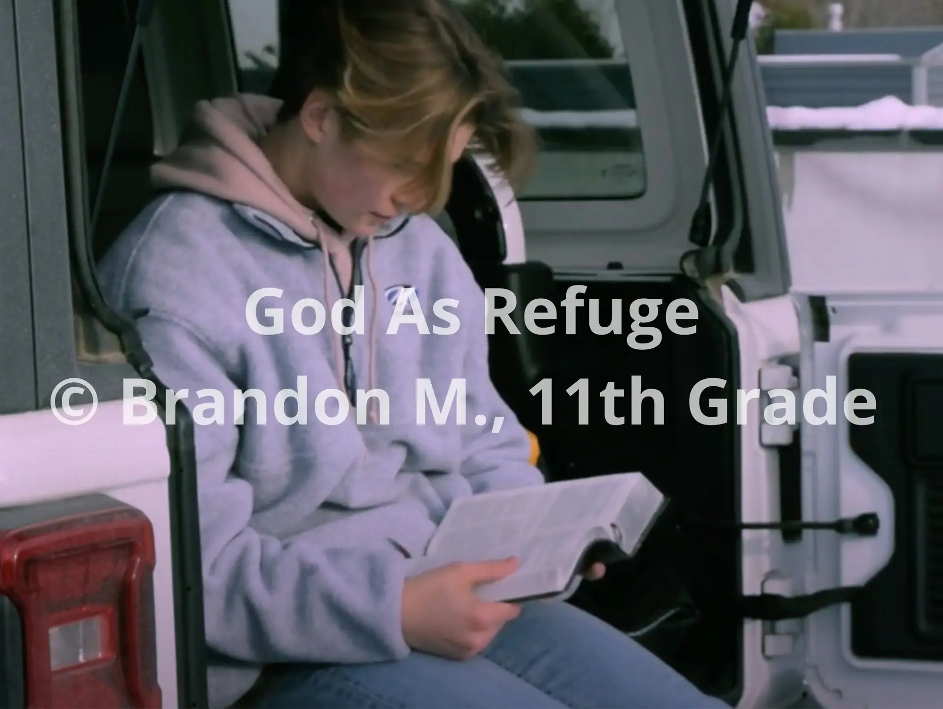 Artist: Brandon, 11th Grade, Southwest Christian High School, Chaska, MN. Medium: Video. Scripture: God is our refuge and strength, an ever-present help in trouble. Psalm