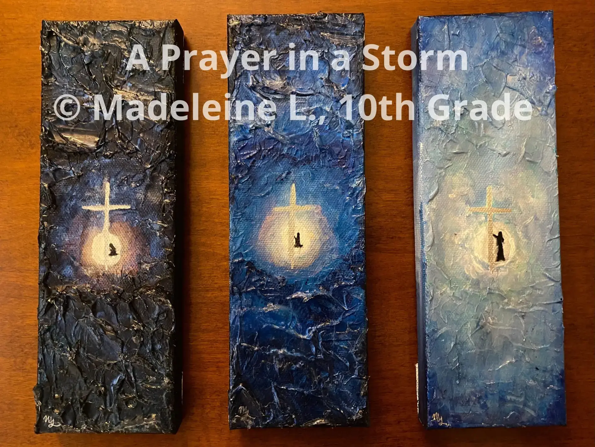 Artist: Luke, 11th Grade, Concordia Academy, Roseville, MN. Medium: Acrylic Paints. Scriptures: For since the creation of the world God’s invisible qualities–his eternal power and