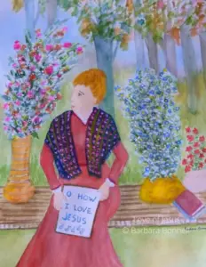 Generation upon generation has had sorrows, struggles, and woes. Although conditions and circumstances may be different, the human heart and its desire for a love relationship with God is universal. By Barbara Bonnell, Fresh Oil Artist Media: Watercolor. Scripture: I John 4:19 (KJV) “We love him, because he first loved us.” Inspired By: Amazing Grace,